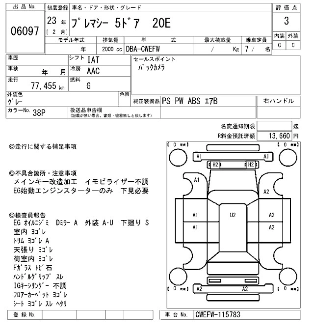 MAZDA PREMACY 2011 г., лот № 6097