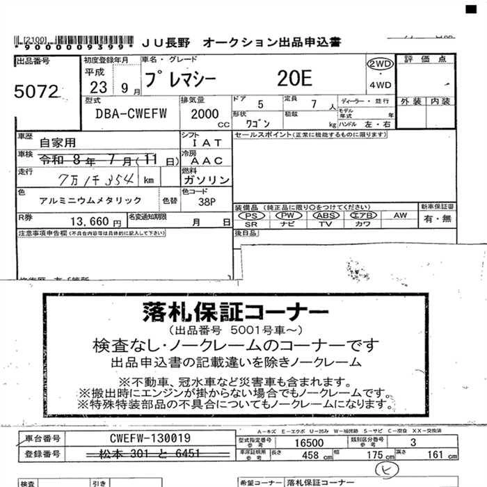Статус продан Лот 5072 Аукцион JU Nagano Дата аукциона 28.10.2025