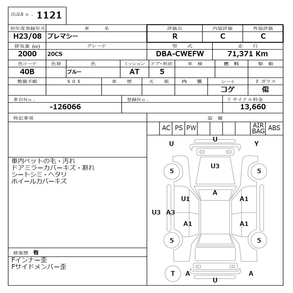 MAZDA PREMACY 2011 г., лот № 1121