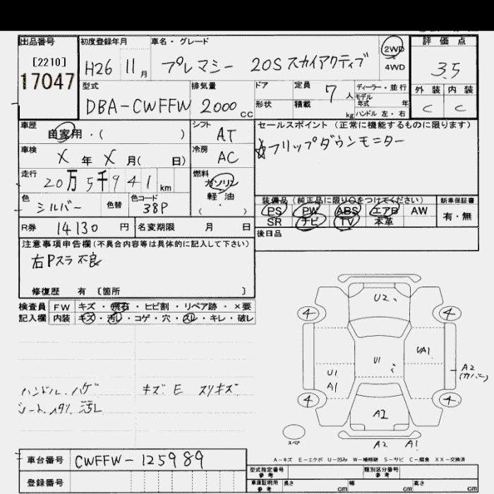 MAZDA PREMACY 2014 г., лот № 17047