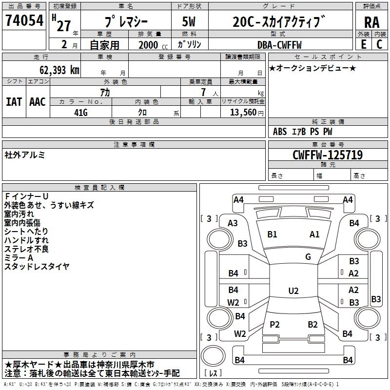 MAZDA PREMACY 2015 г., лот № 74054