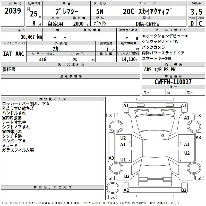 MAZDA PREMACY 2013 г., лот № 2039