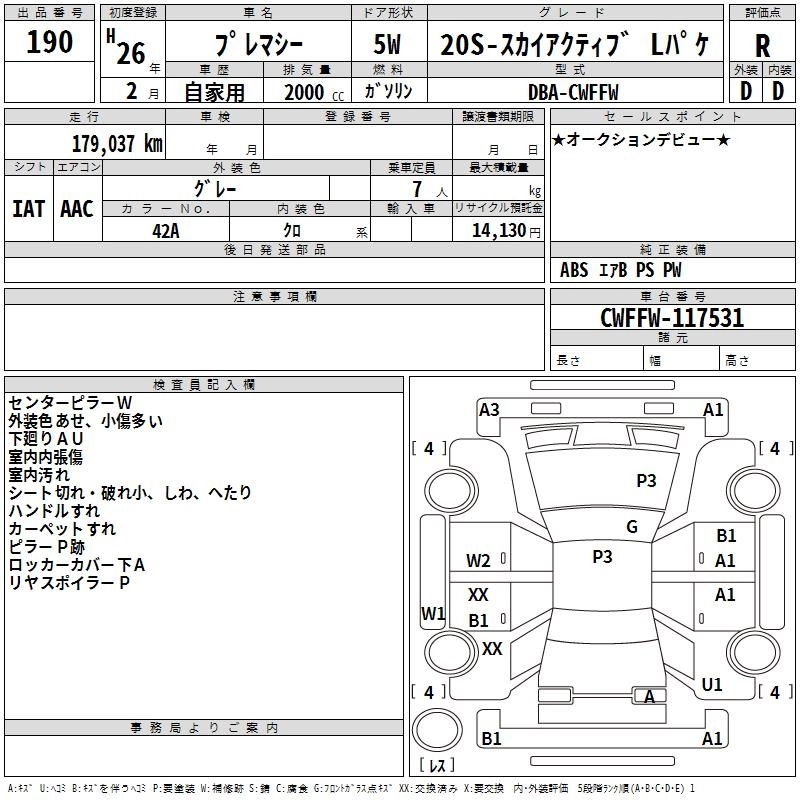 MAZDA PREMACY 2014 г., лот № 190