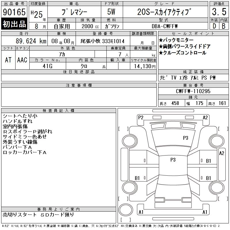 MAZDA PREMACY 2013 г., лот № 90165