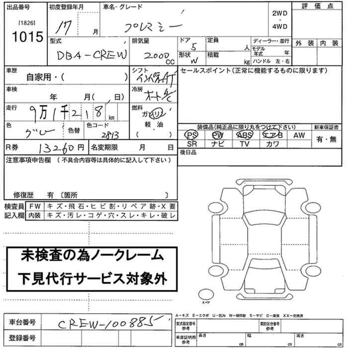 Стартовая цена авто на аукционе 0 ¥