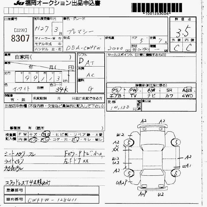 Статус выставлен на аукцион Лот 8307 Аукцион JU Fukuoka Дата аукциона 13.03.2026