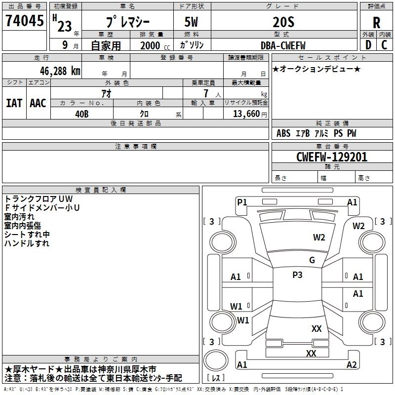 MAZDA PREMACY 2011 г., лот № 74045