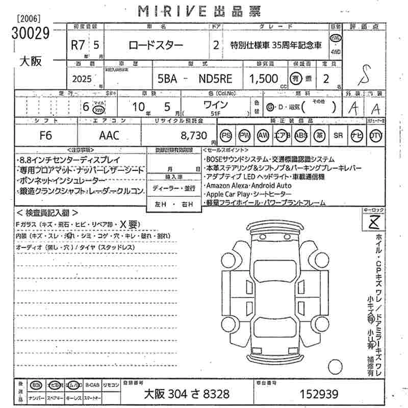 Статус выставлен на аукцион Лот 30029 Аукцион MIRIVE Osaka Дата аукциона 11.12.2025