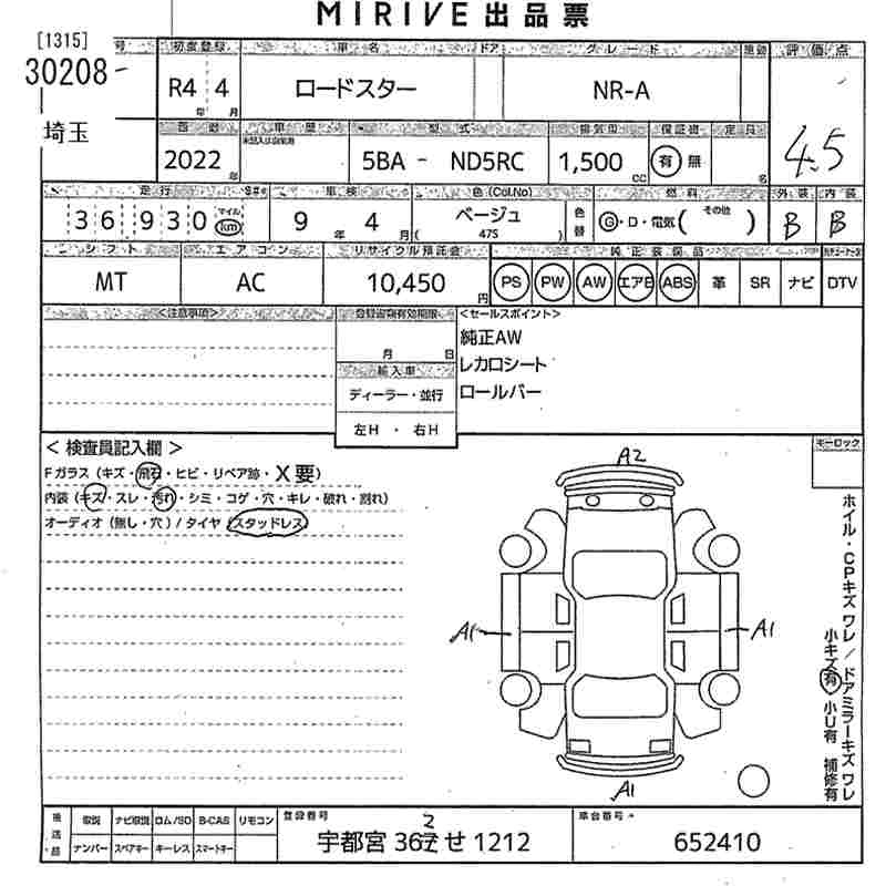 Статус выставлен на аукцион Лот 30208 Аукцион MIRIVE Saitama Дата аукциона 28.01.2026