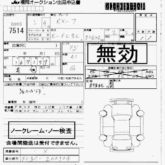 Статус не продан Лот 7514 Аукцион JU Fukuoka Дата аукциона 23.01.2026