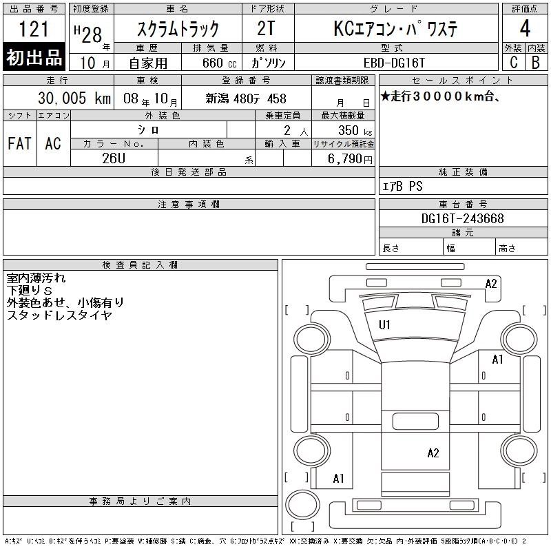 Год выпуска2016 Пробег 30 000 км КузовDG16T КомплектацияKC AIR CONDITIONER * POWER STEERING