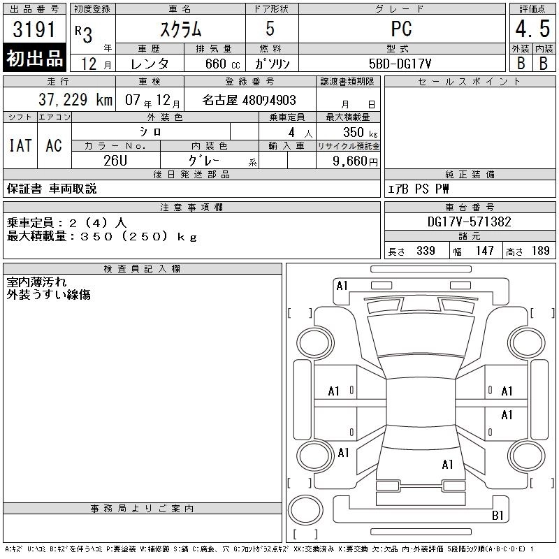 Статус выставлен на аукцион Лот 3191 Аукцион CAA Chubu Дата аукциона 10.12.2025