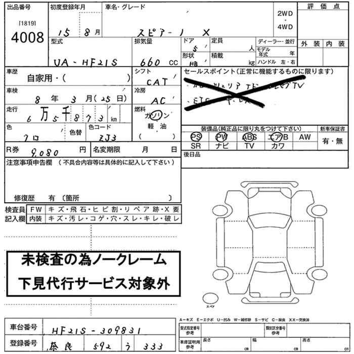Год выпуска2003 Пробег 65 000 км КузовHF21S КомплектацияX