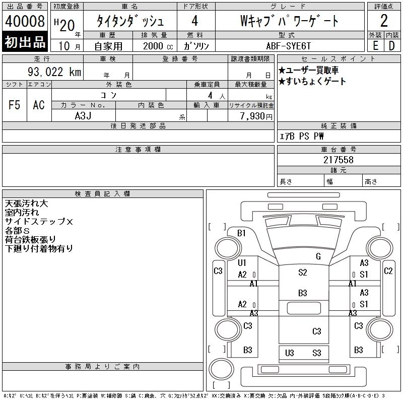 Год выпуска2008 Пробег 93 000 км КузовSYE6T Комплектация W CAB POWER GATE