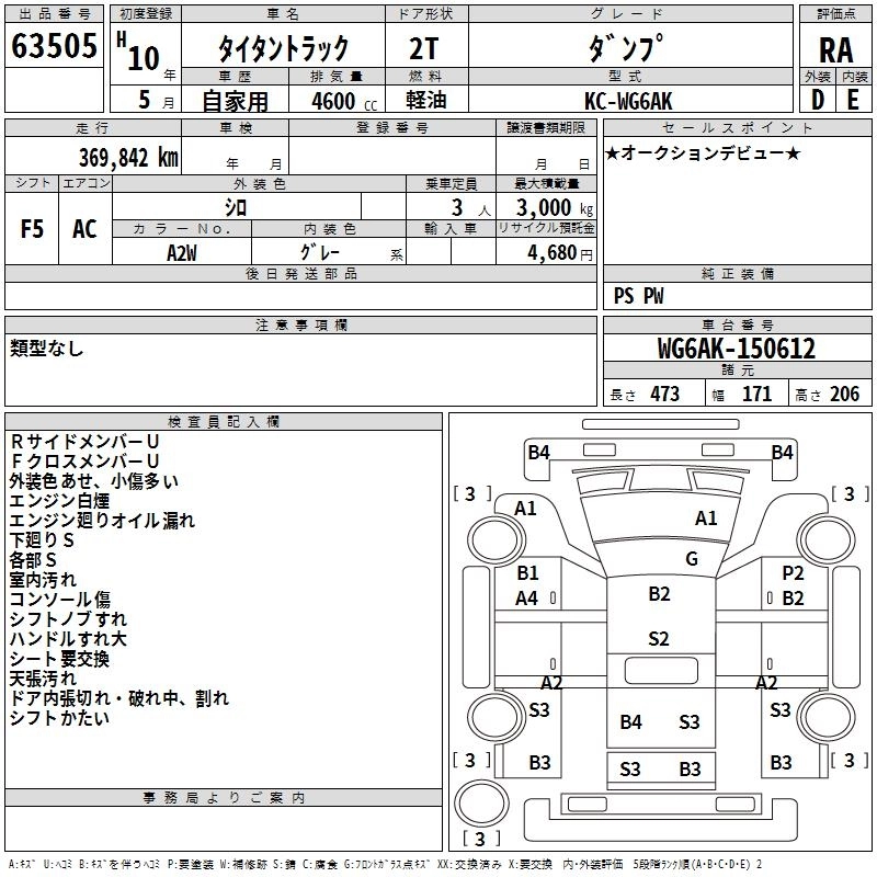 Статус выставлен на аукцион Лот 63505 Аукцион TAA Shikoku Дата аукциона 27.01.2026
