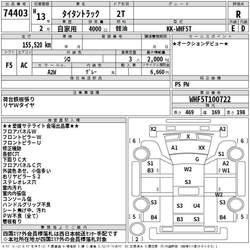 Статус выставлен на аукцион Лот 74403 Аукцион TAA Shikoku Дата аукциона 10.03.2026