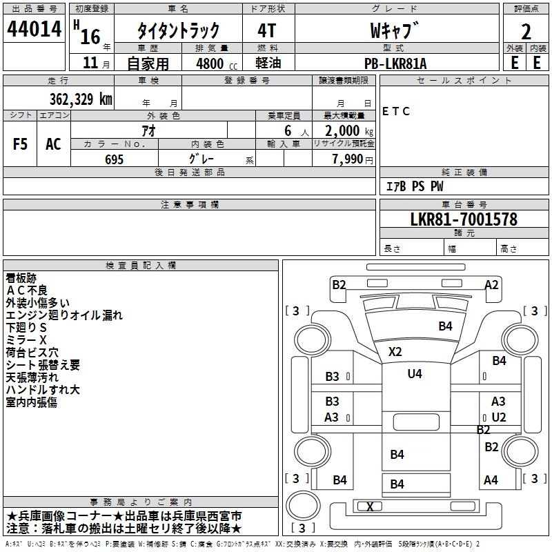 Год выпуска2004 Пробег 362 000 км КузовLKR81A Комплектация W CAB