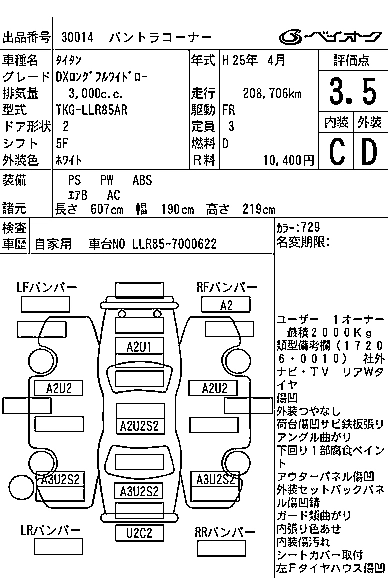 Год выпуска2013 Пробег 209 000 км КузовLLR85AR КомплектацияDX LONG FULL WIDE LOW