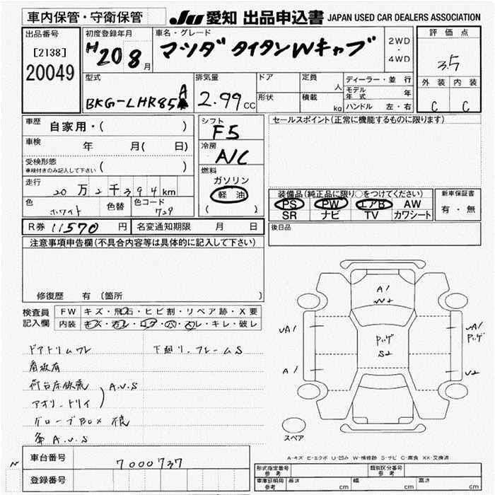 MAZDA TITAN 2008 г., лот № 20049