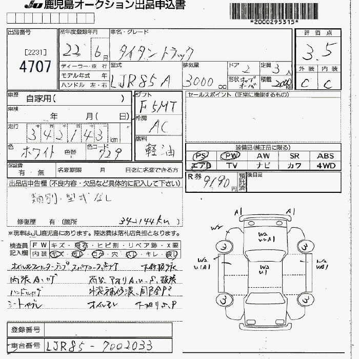 Статус продан Лот 4707 Аукцион JU Fukuoka Дата аукциона 23.01.2026