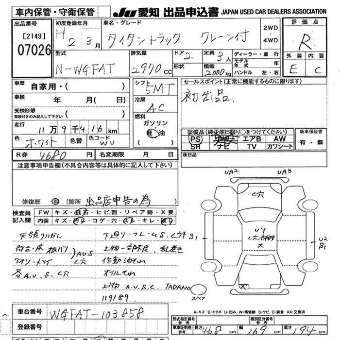 Статус выставлен на аукцион Лот 7026 Аукцион JU Aichi Дата аукциона 12.03.2026