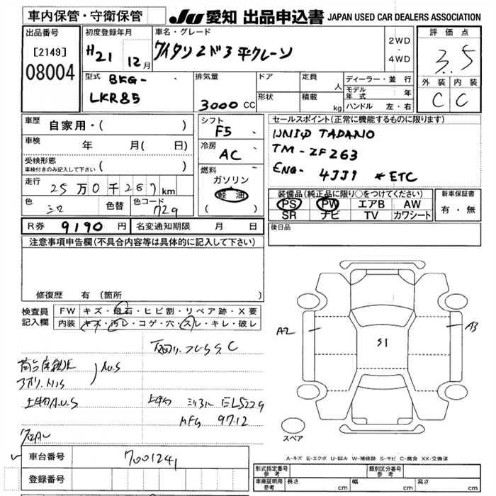 Статус выставлен на аукцион Лот 8004 Аукцион JU Aichi Дата аукциона 12.03.2026