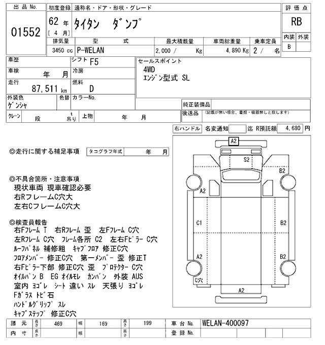 Год выпуска1987 Пробег 88 000 км КузовWELAN Комплектация DUMP
