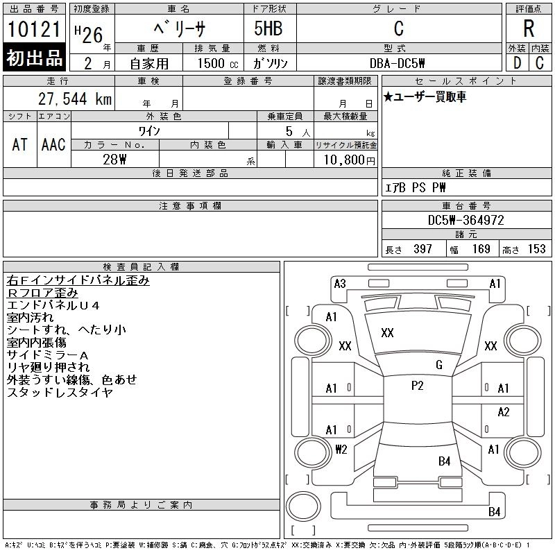 MAZDA VERISA 2014 г., лот № 10121
