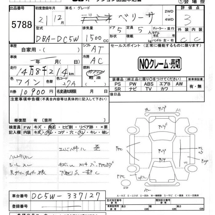 Статус выставлен на аукцион Лот 5788 Аукцион JU Chiba Дата аукциона 12.12.2025