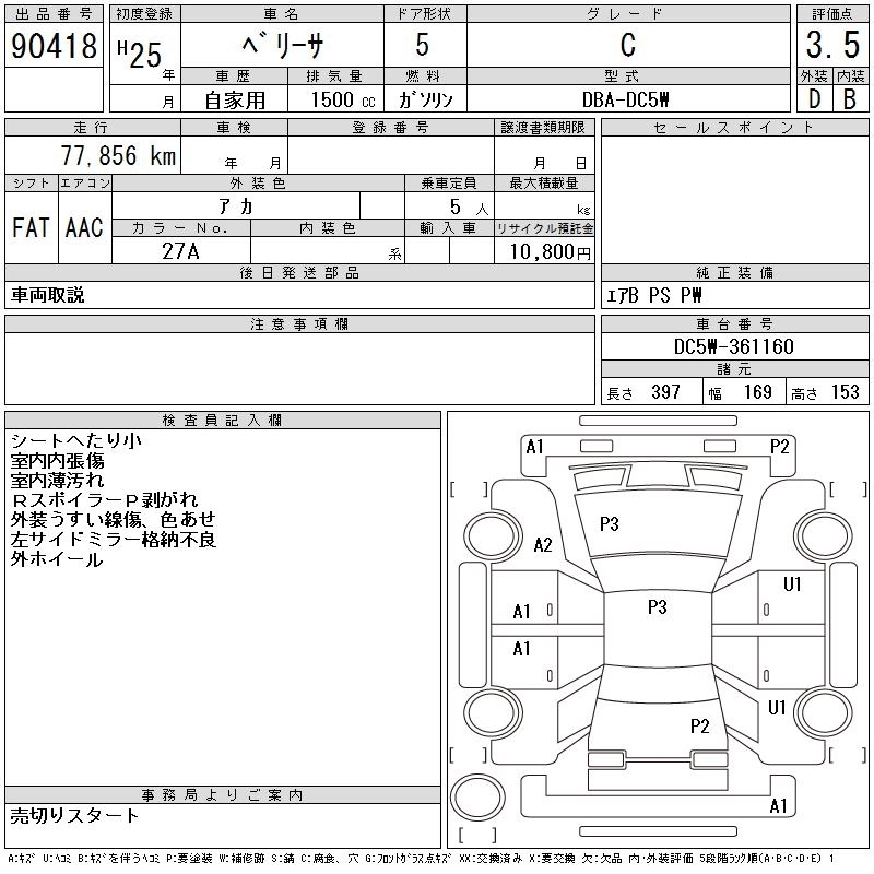 Статус выставлен на аукцион Лот 90418 Аукцион CAA Chubu Дата аукциона 11.03.2026