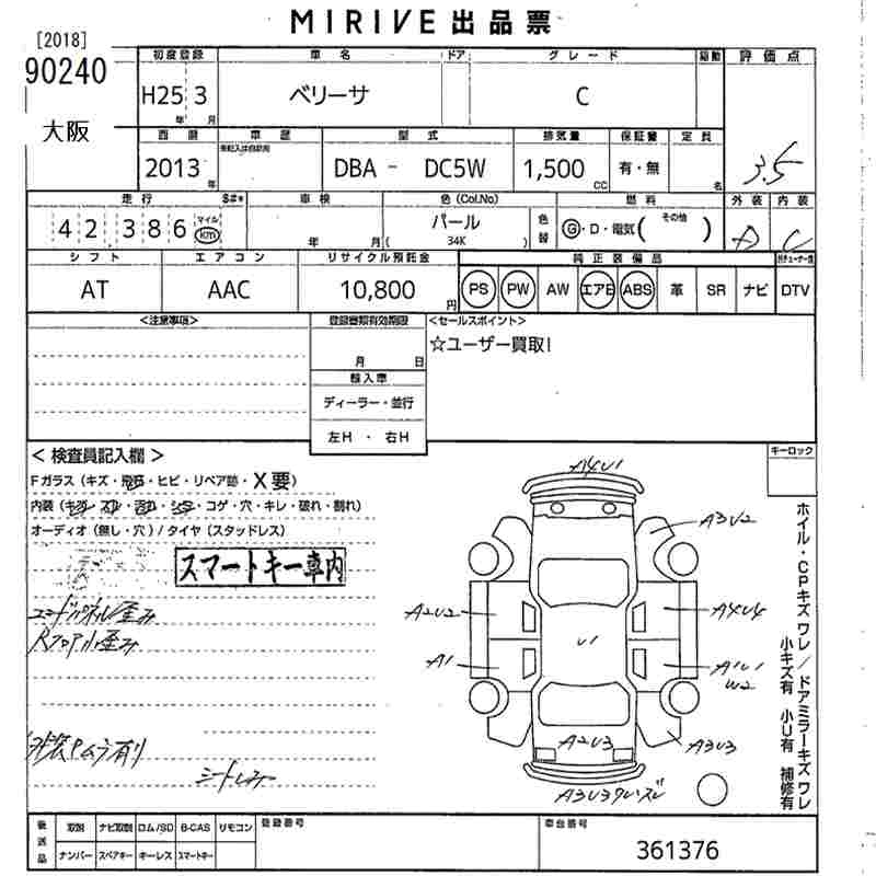 Статус выставлен на аукцион Лот 90240 Аукцион MIRIVE Osaka Дата аукциона 12.03.2026