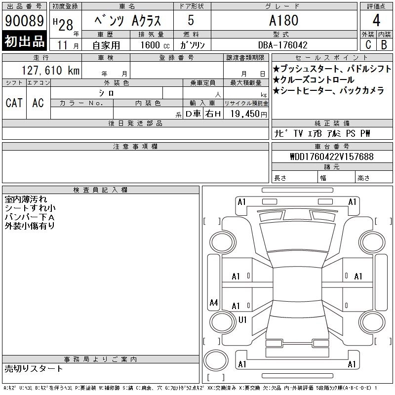 MERCEDES BENZ A CLASS 2016 г., лот № 90089