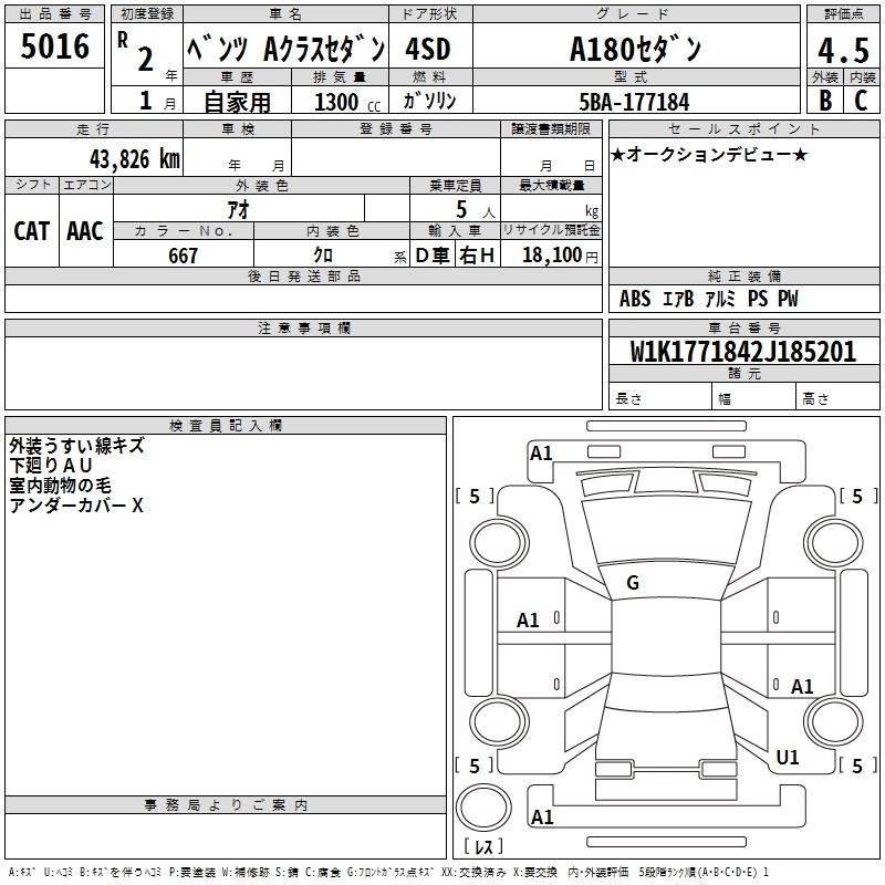 MERCEDES BENZ A CLASS 2020 г., лот № 5016