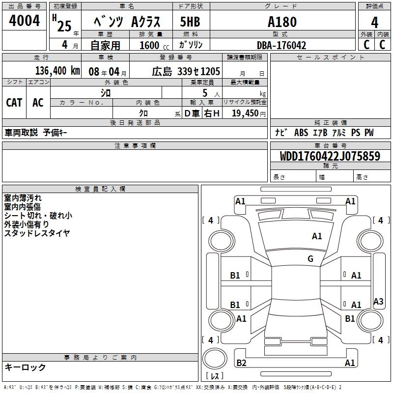 MERCEDES BENZ A CLASS 2013 г., лот № 4004