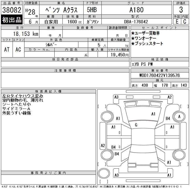 MERCEDES BENZ A CLASS 2016 г., лот № 38082