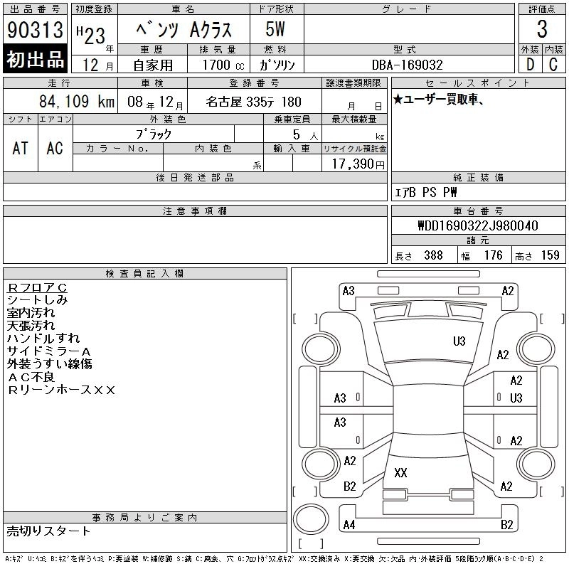 MERCEDES BENZ A CLASS 2011 г., лот № 90313