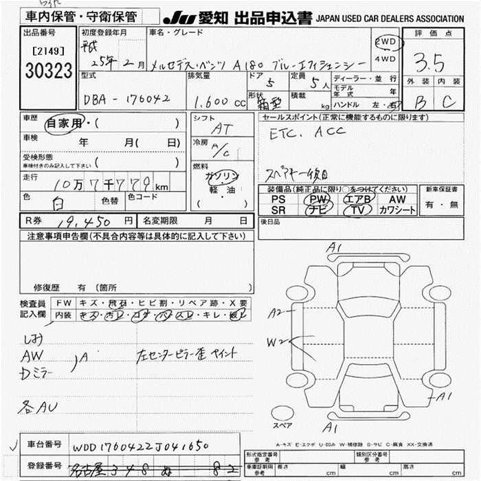 MERCEDES BENZ A CLASS 2013 г., лот № 30323