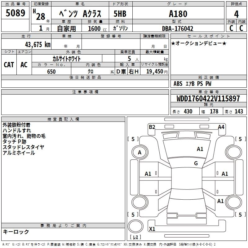 MERCEDES BENZ A CLASS 2016 г., лот № 5089