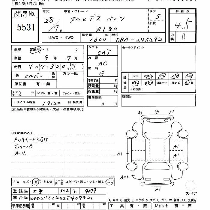 MERCEDES BENZ B CLASS 2016 г., лот № 5531