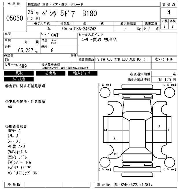 Статус выставлен на аукцион Лот 5050 Аукцион ARAI Bayside Дата аукциона 31.10.2025