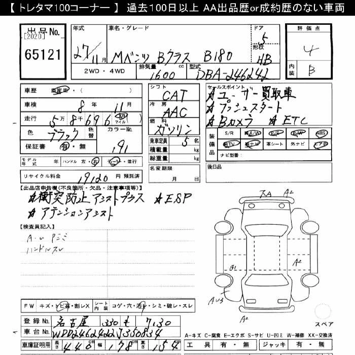 MERCEDES BENZ B CLASS 2015 г., лот № 65121