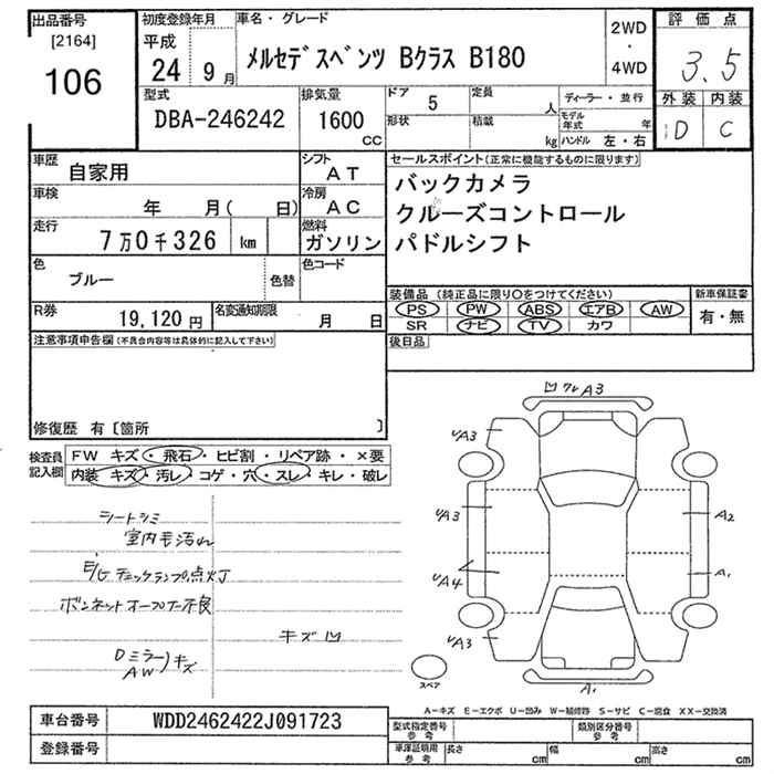 MERCEDES BENZ B CLASS 2012 г., лот № 106