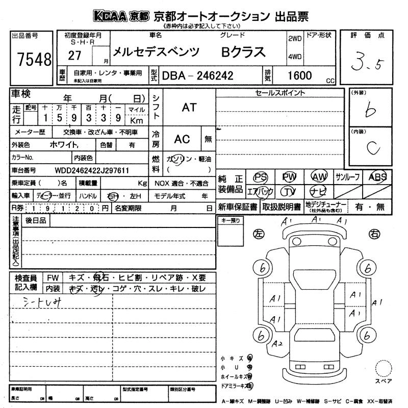 MERCEDES BENZ B CLASS 2015 г., лот № 7548