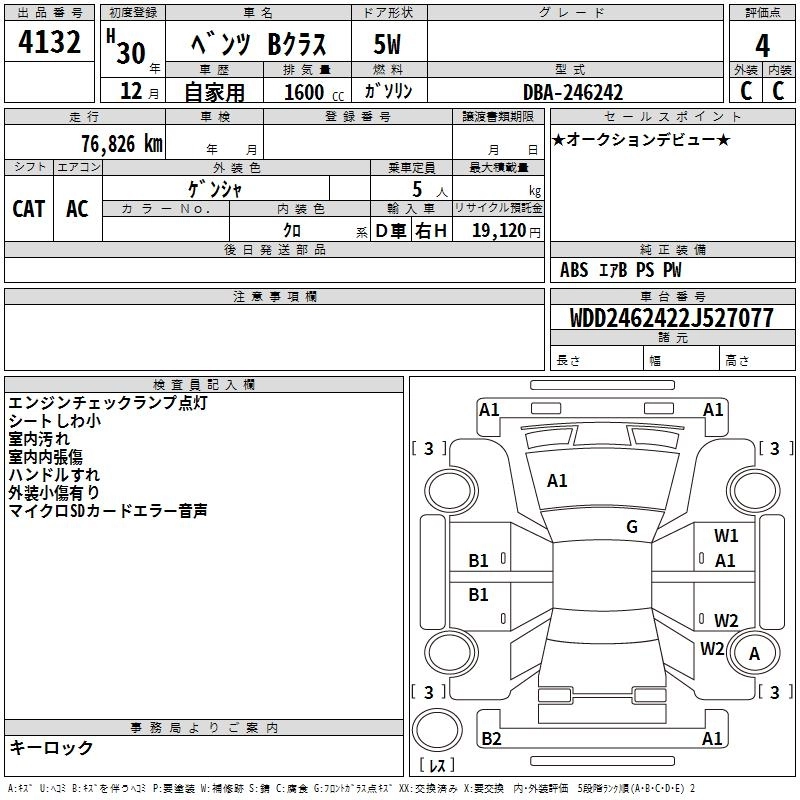 MERCEDES BENZ B CLASS 2018 г., лот № 4132