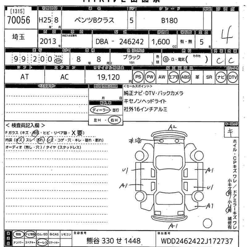 MERCEDES BENZ B CLASS 2013 г., лот № 70056
