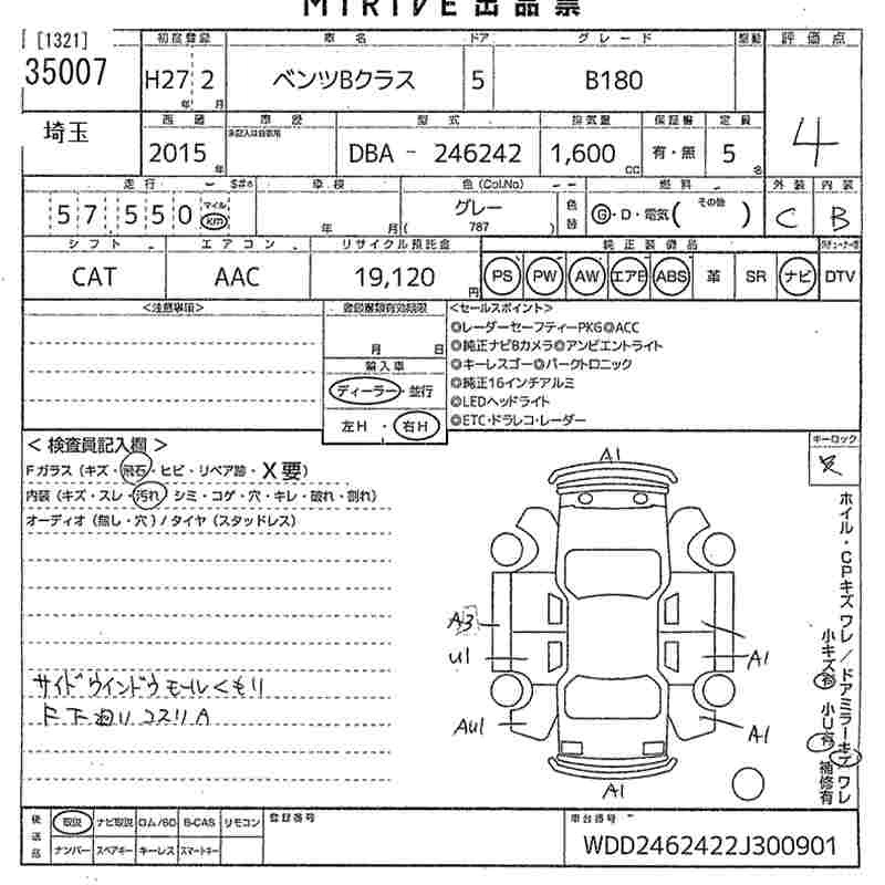 MERCEDES BENZ B CLASS 2015 г., лот № 35007