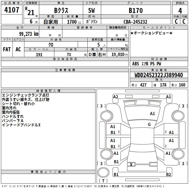 MERCEDES BENZ B CLASS 2009 г., лот № 4107