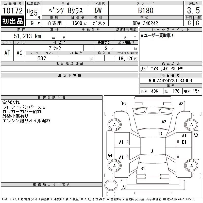 MERCEDES BENZ B CLASS 2013 г., лот № 10172