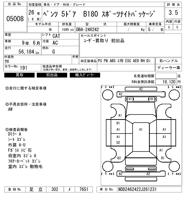 MERCEDES BENZ B CLASS 2014 г., лот № 5008