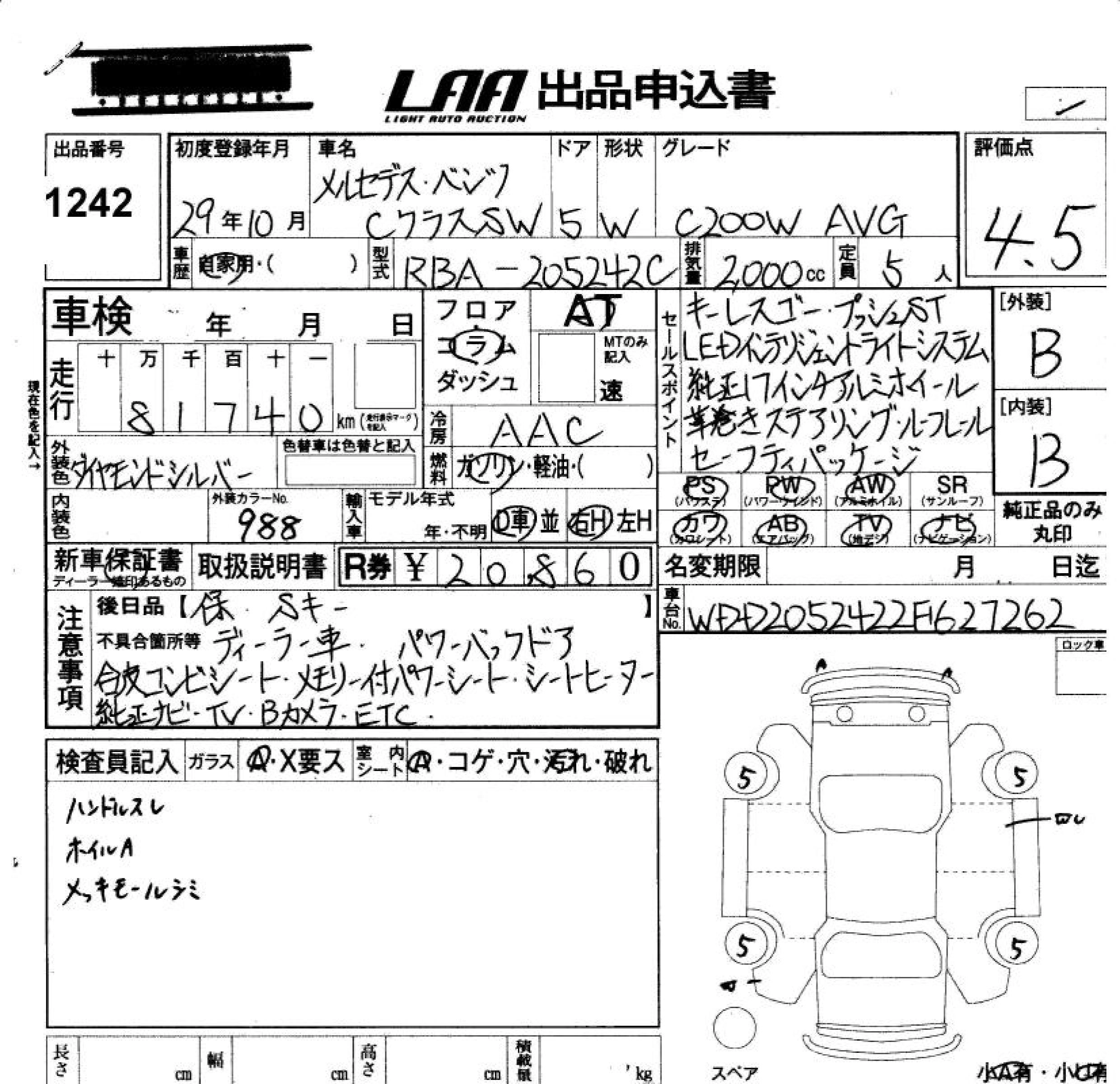 MERCEDES BENZ C CLASS STATION WAGON 2017 г., лот № 1242
